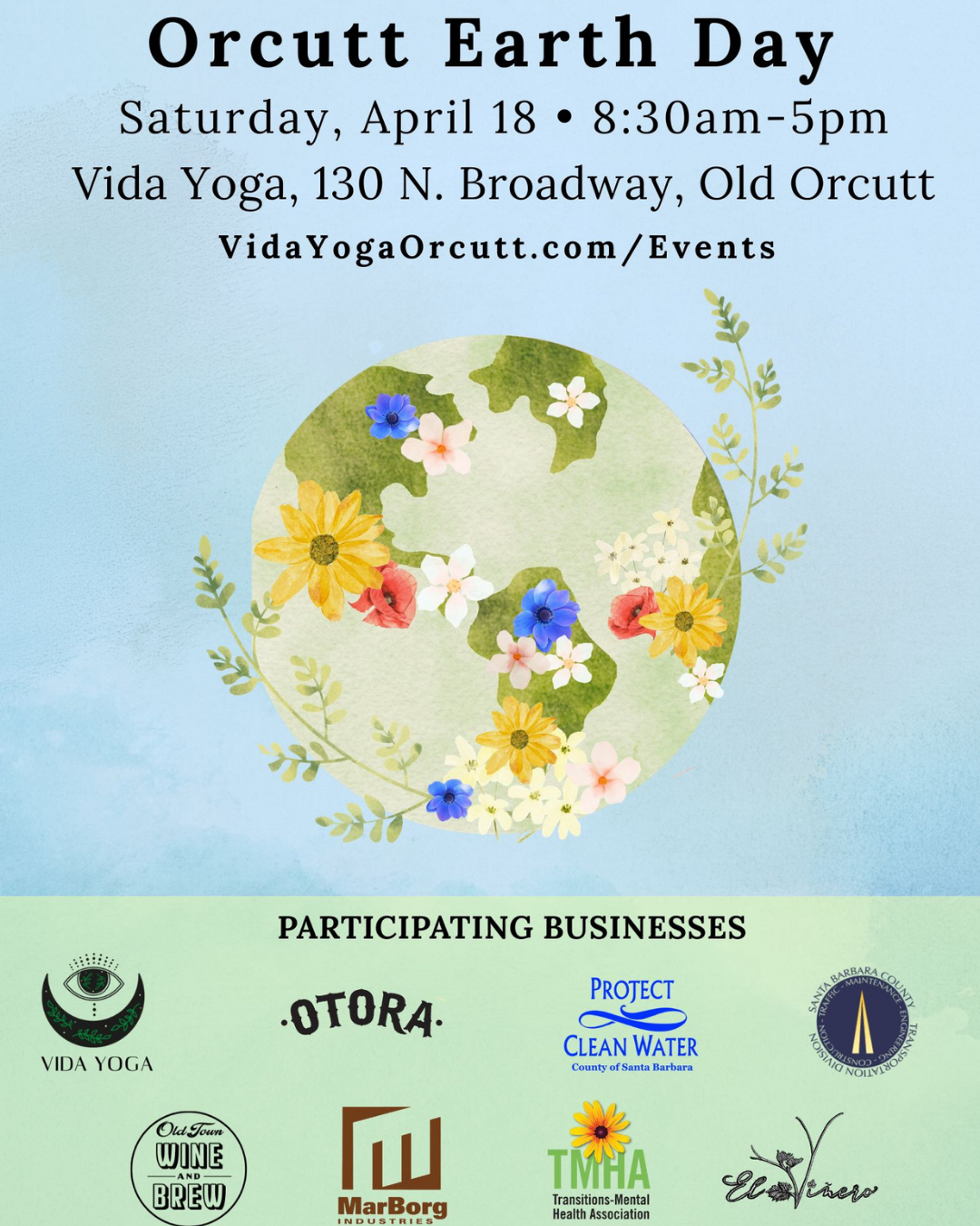 Join us on April 18th in celebration of Earth Day for a special Educational Tasting, in collaboration with Vida Yoga, Project Clean Water, OTORA and others as part of the Orcutt Earth Day festivities.